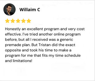 Best suited for individuals who need extra guidance. Includes everything in my general package along with a monthly online training session with Tristan!